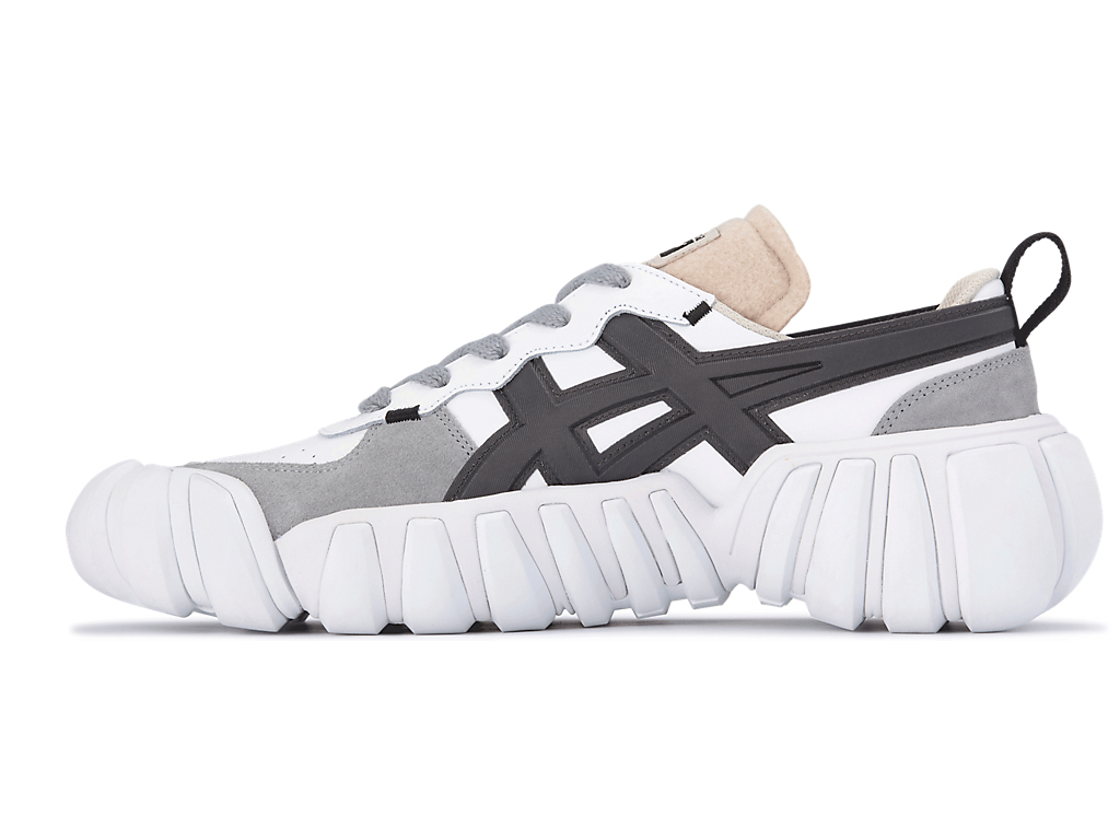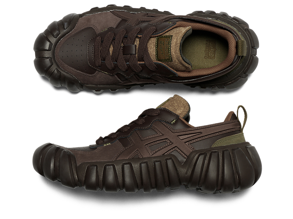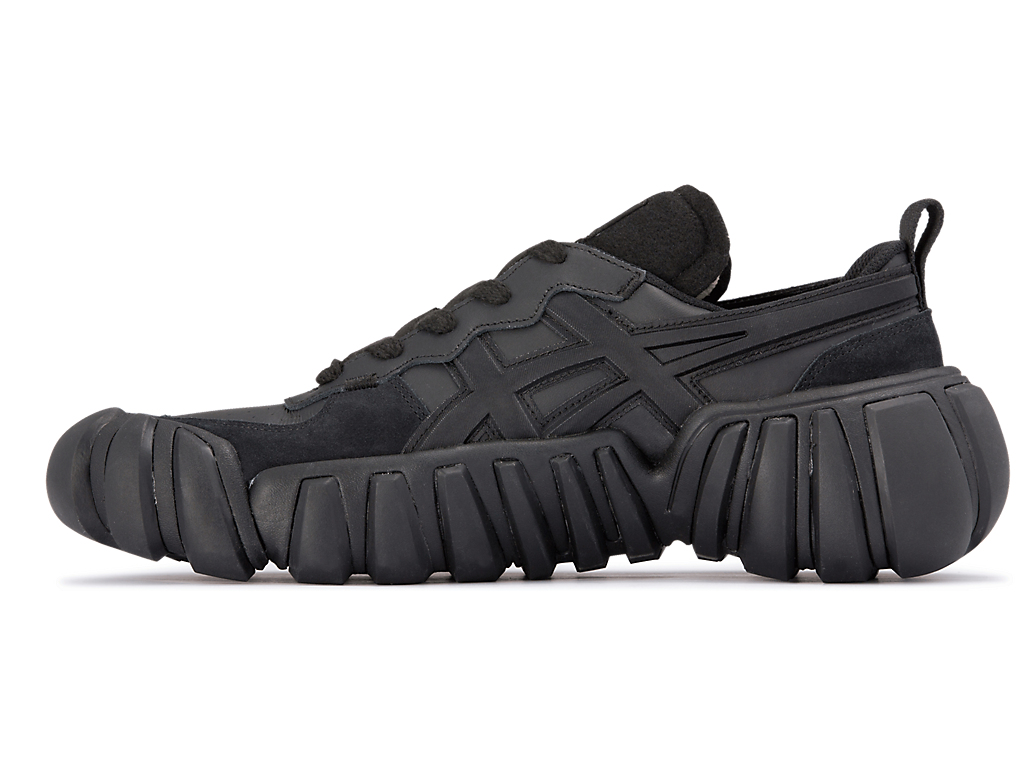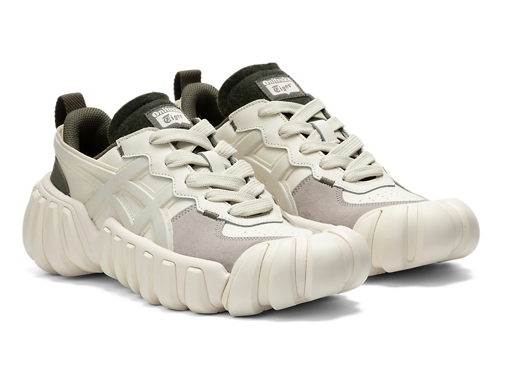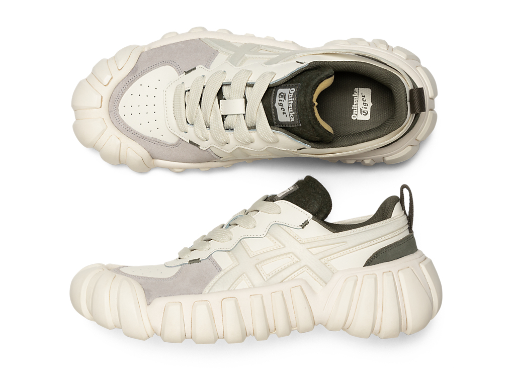 立体的なオニツカタイガーストライプのデザインやフェルト素材を採用したシュータンと、ボリュームのあるソールが特徴。