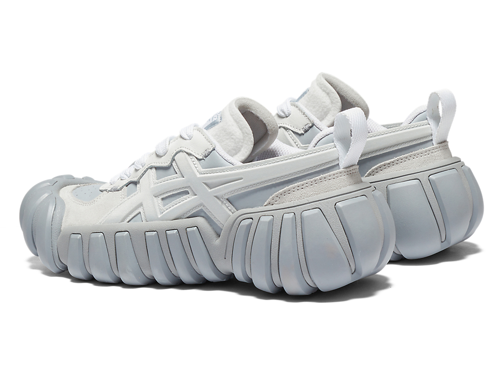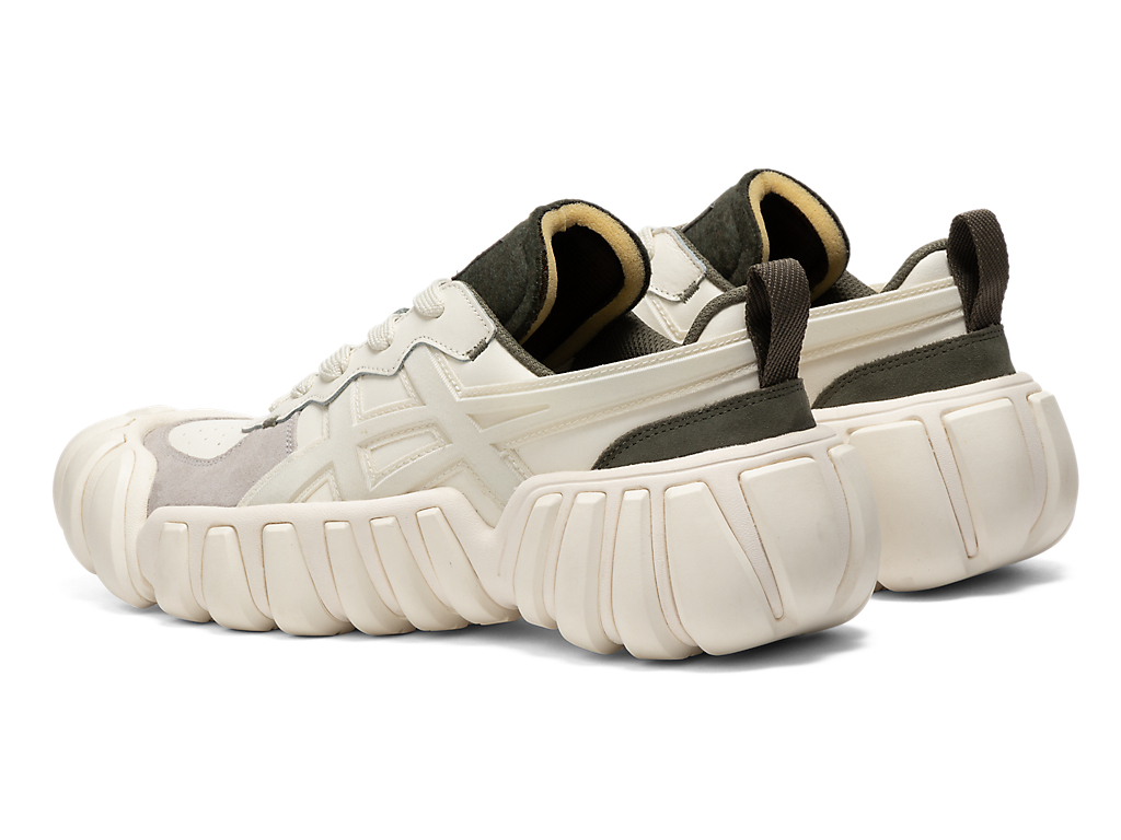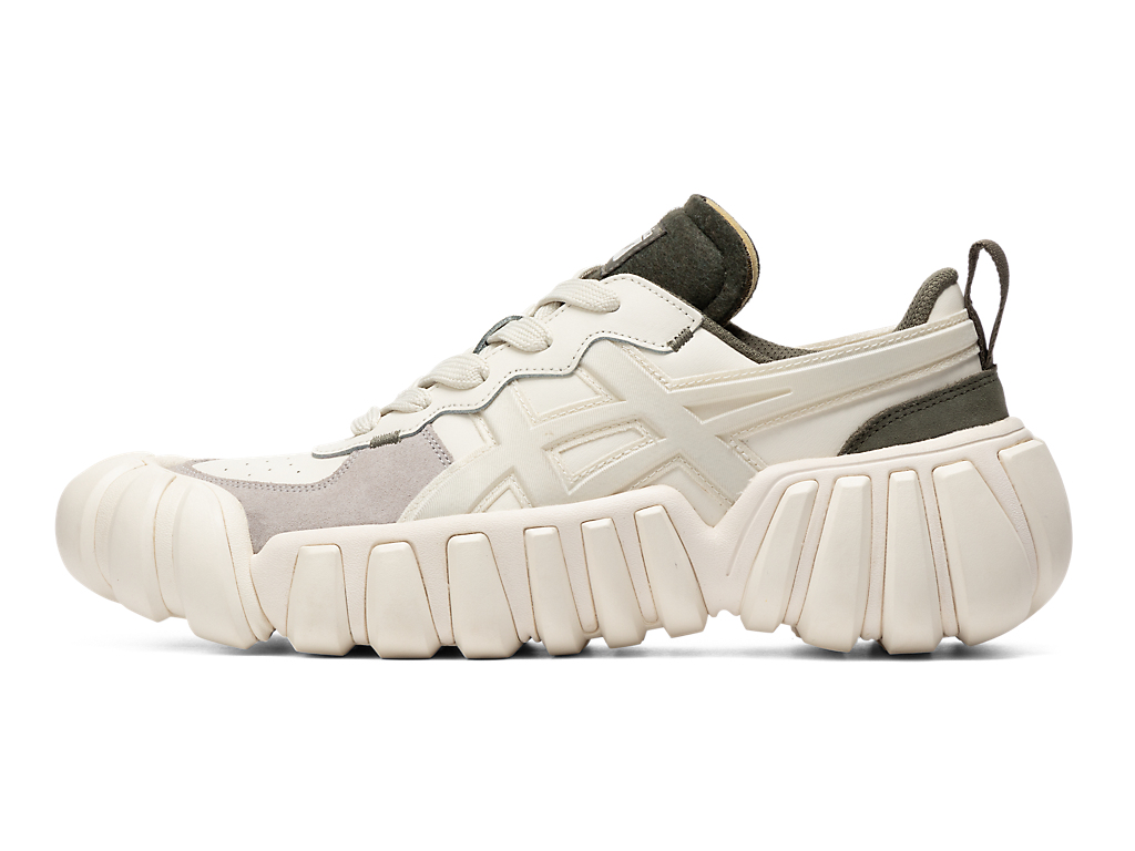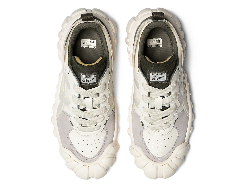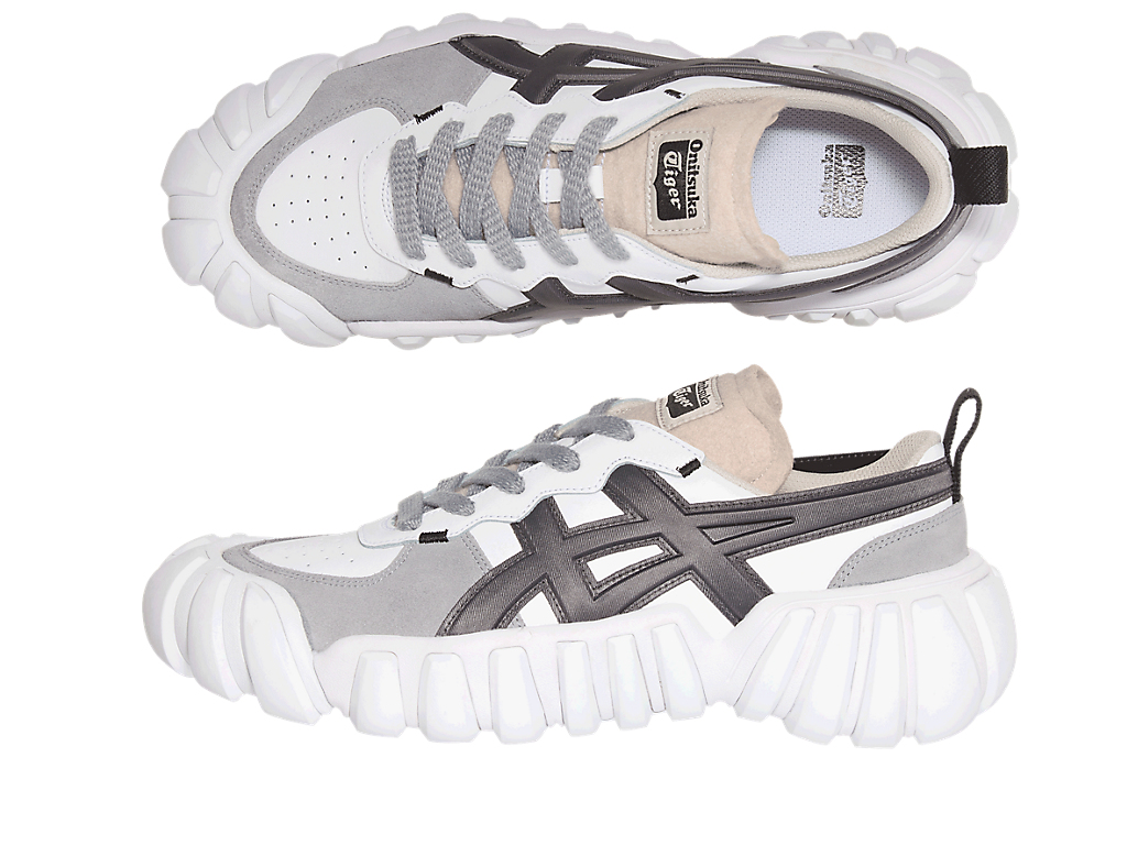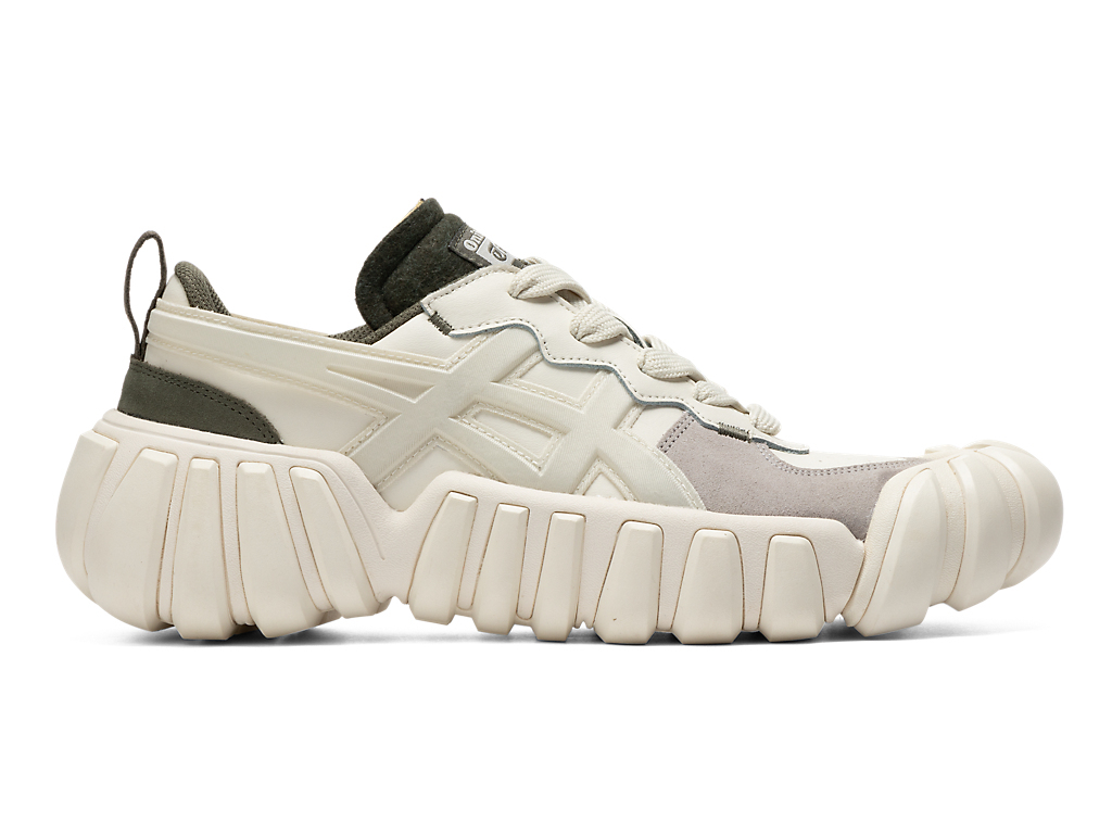 立体的なオニツカタイガーストライプのデザインやフェルト素材を採用したシュータンと、ボリュームのあるソールが特徴。