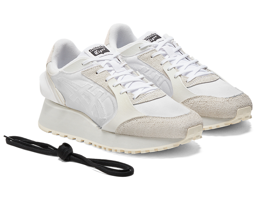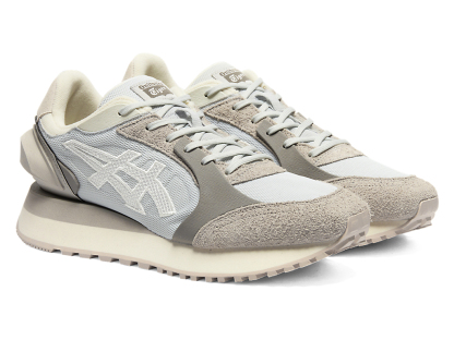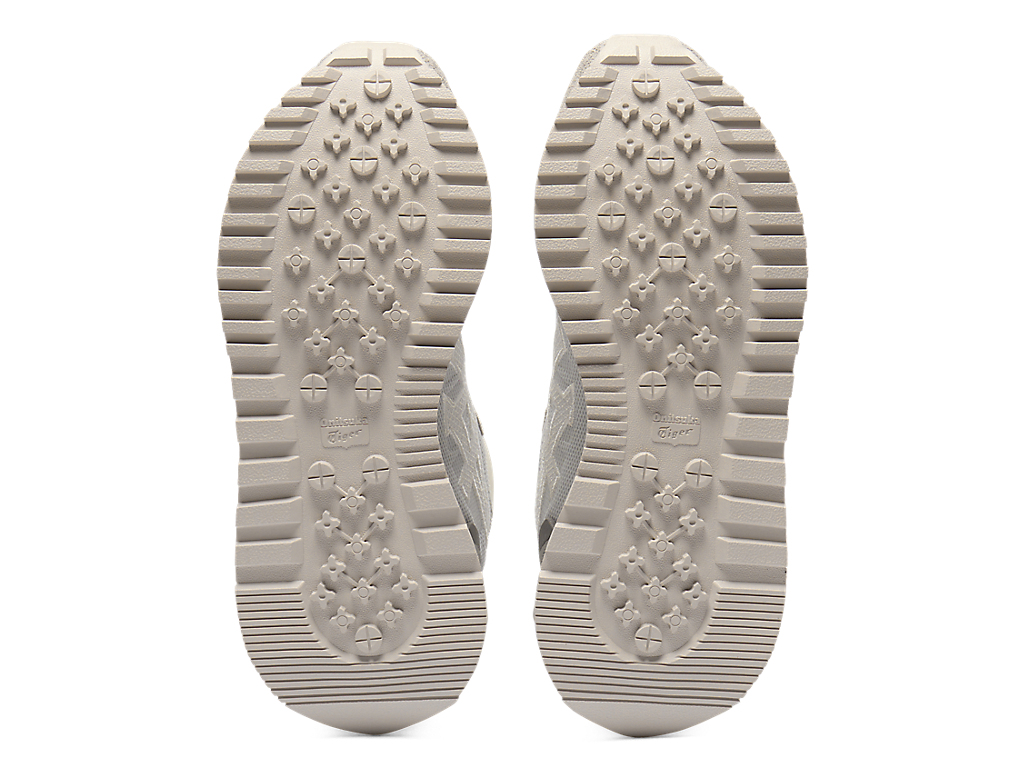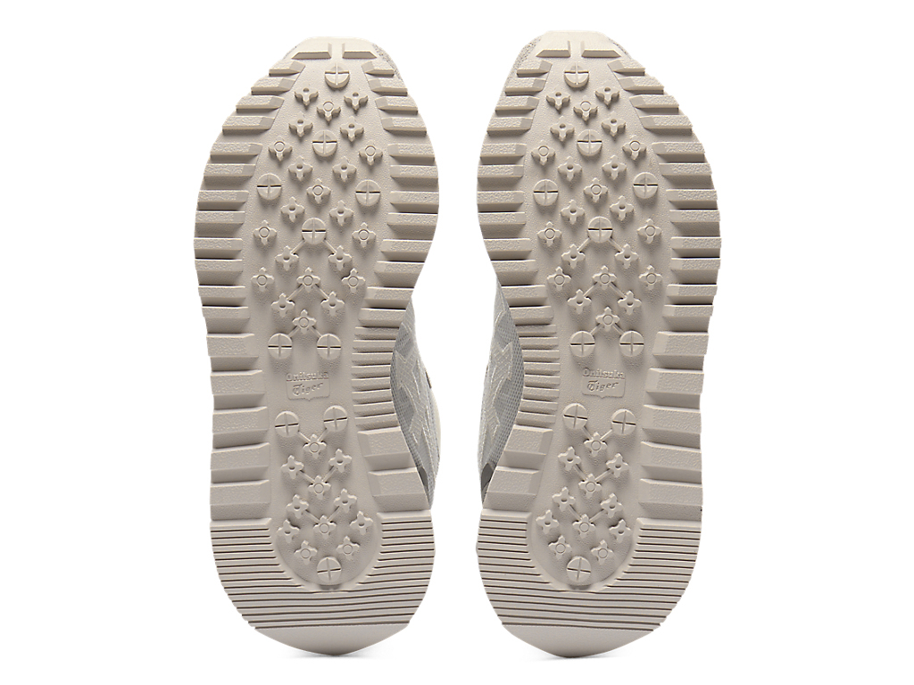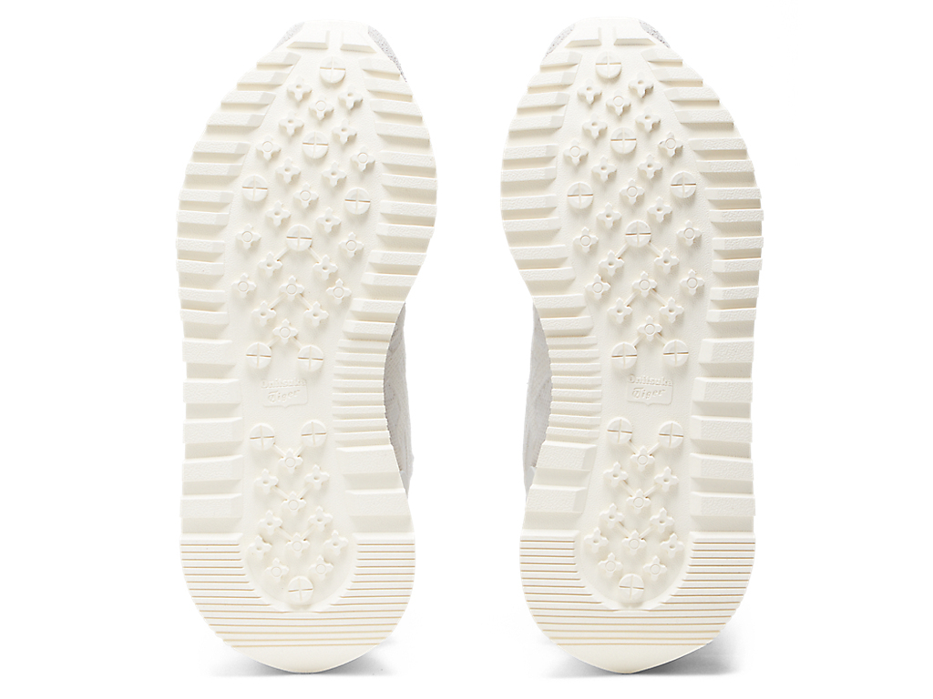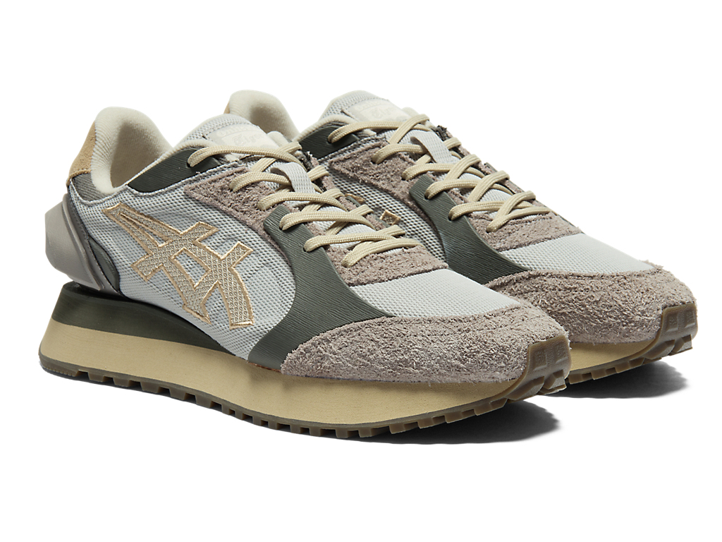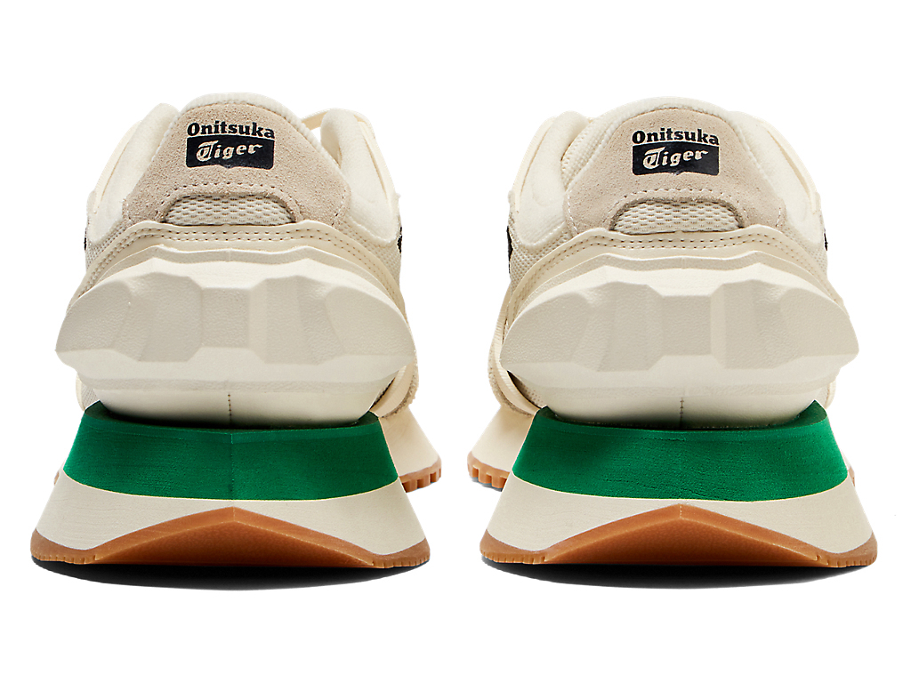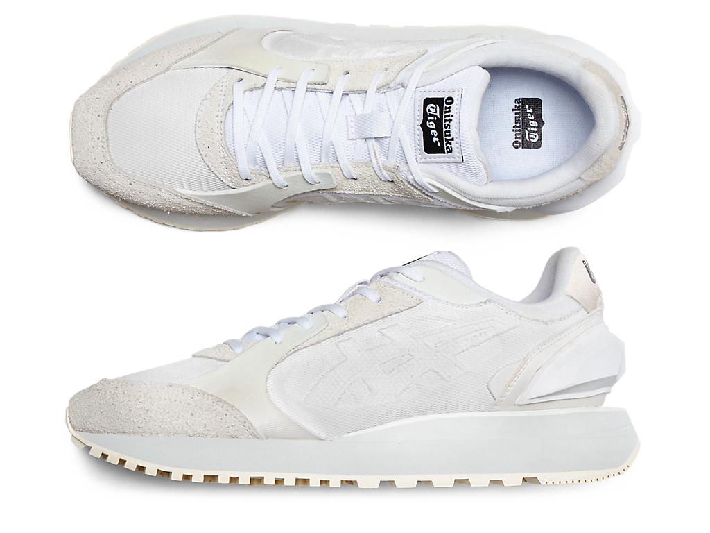 1980年代のランニングシューズからインスピレーションを受けたアッパーデザインは、ラバーパーツをはじめとする複数の異素材のレイヤーで構成されており、目の粗いメッシュと刺繍で凹凸感を表現したオニツカタイガーストライプや、大胆な凹凸を表現したかかと部分が特徴。
